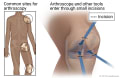 During arthroscopy, the arthroscope is put into your joint through a small cut (incision) in the skin. The scope has a light source and a video camera attached to it. Images from the camera can be seen on a video screen. These magnified images provide a clear picture of your joint. During the procedure, a sample of joint tissue can be collected to be tested. This is called a biopsy. If needed, more tools will be put into your joint through other small incisions.